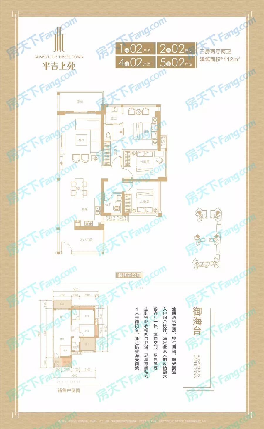 平吉上苑此次开放了「御海台」、「海澜涧」和「海云台」三个户型的样板间,建筑面积分别为112㎡、119㎡和165㎡,均位于南滨路临海第一排。